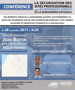 Landes Medef vous invite à assister, avec les référents sûreté de la gendarmerie, à une conférence sur la sécurisation des sites professionnels.