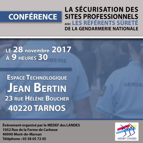 Landes Medef vous invite à assister, avec les référents sûreté de la gendarmerie, à une conférence sur la sécurisation des sites professionnels.
