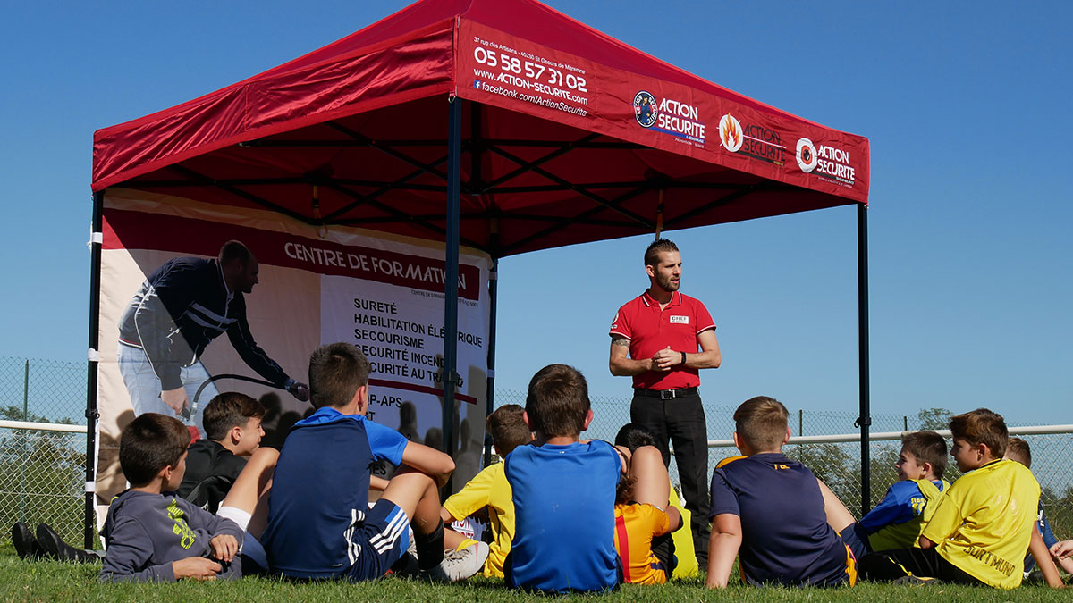 Le 24 Octobre 2018, Action Sécurité Incendie a proposé une sensibilisation aux gestes de premiers secours aux jeunes footballeurs U13 et U15 du Chalosse Football Club Laurède en stage de vacances.